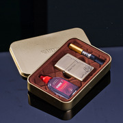 EARTH煤油打火机 青铜玫瑰花砂轮火石明火创意礼品 铁盒装三件套