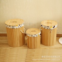 圆收纳桶带盖脏衣篓竹编折叠筐田园布艺洗衣篮玩具整理储物箱编织