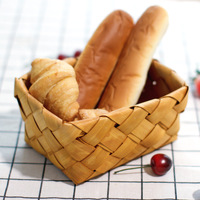 日式纯手工木片编织收纳篮田园风迷你收纳篮面包水果蔬菜杂物篮
